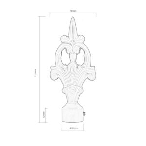 Finial Daisy slides 1 cm over the rod. Outer dimensions 11,5 cm long and 5 cm wide.