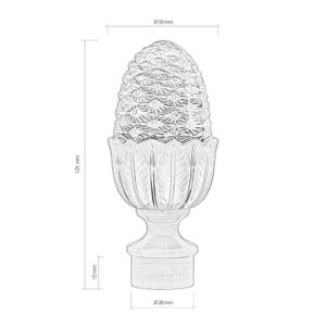 Finial Grace slides 1,5 cm over the rod. Outer dimensions 12 cm long and 5 cm wide.