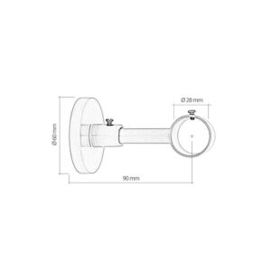 This bracket is suitable for 28 mm rod. Mounting plate has a diameter of 6 cm.